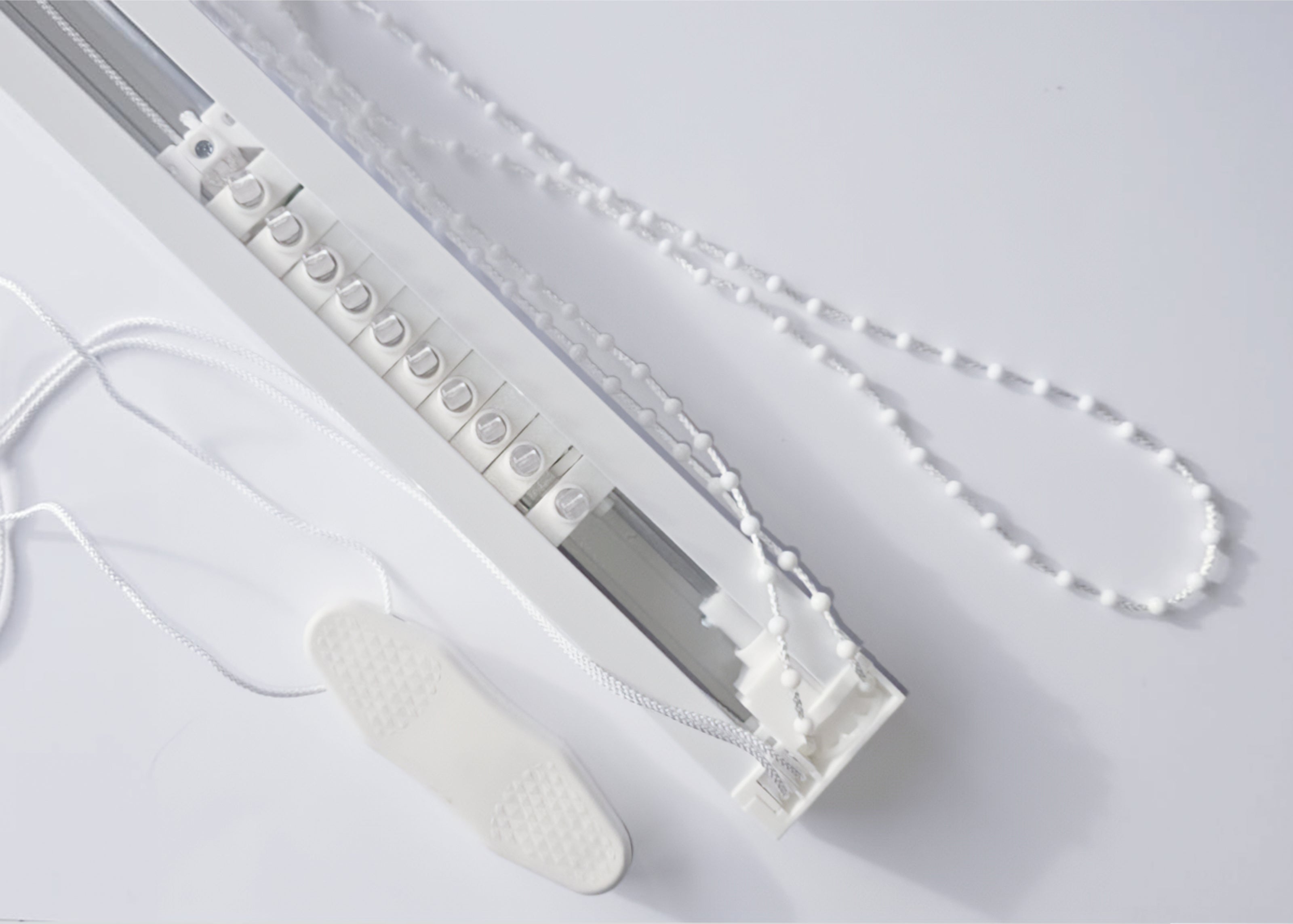 Lamelele se strâng pe aceeași parte cu lanțul și șnurul de acționare (stânga sau dreapta).