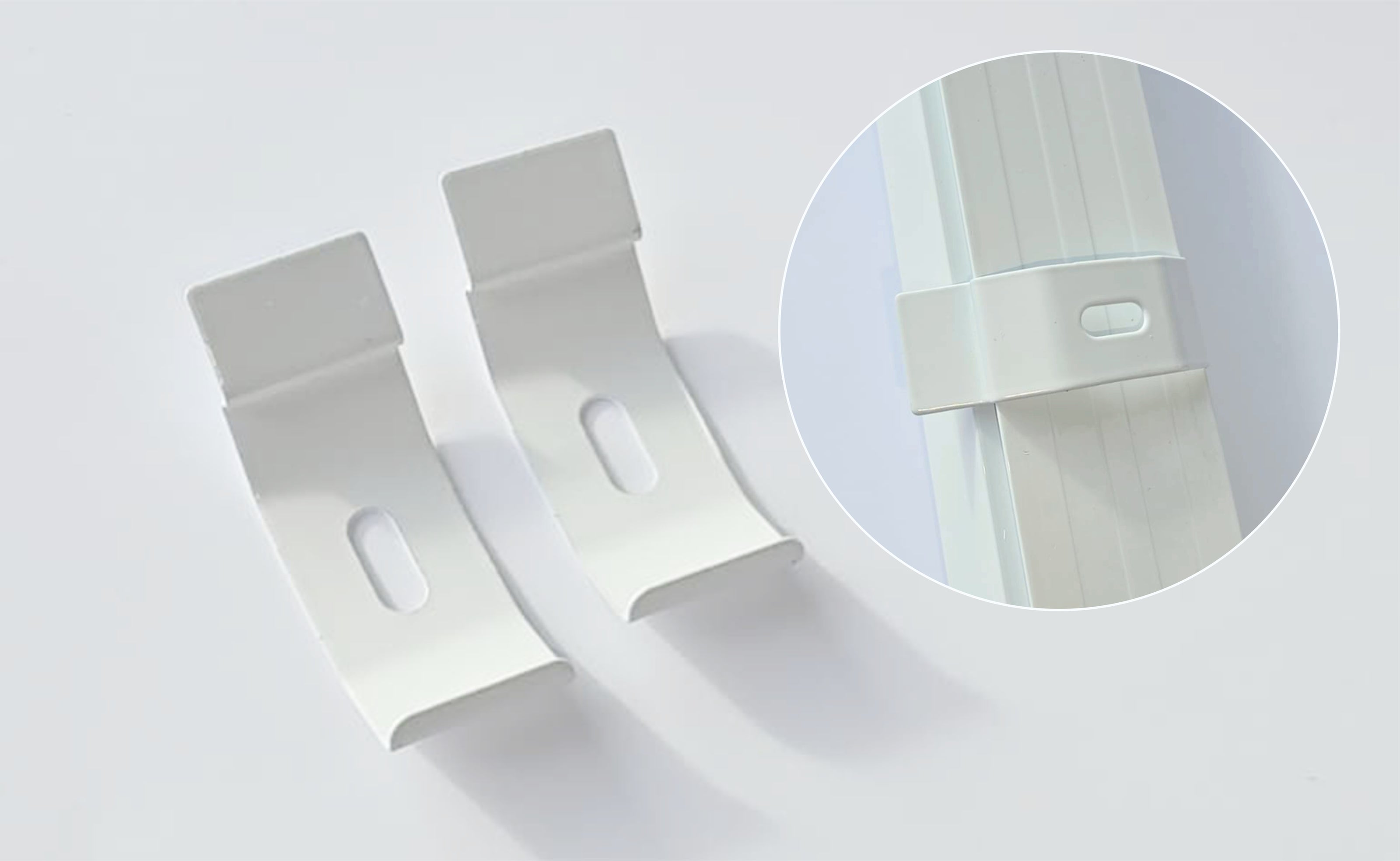 Primești clipsurile pentru montaj. Șuruburile și diblurile nu sunt incluse, deoarece se aleg în funcție de materialul suport (tavan/perete: beton, BCA, rigips etc.).