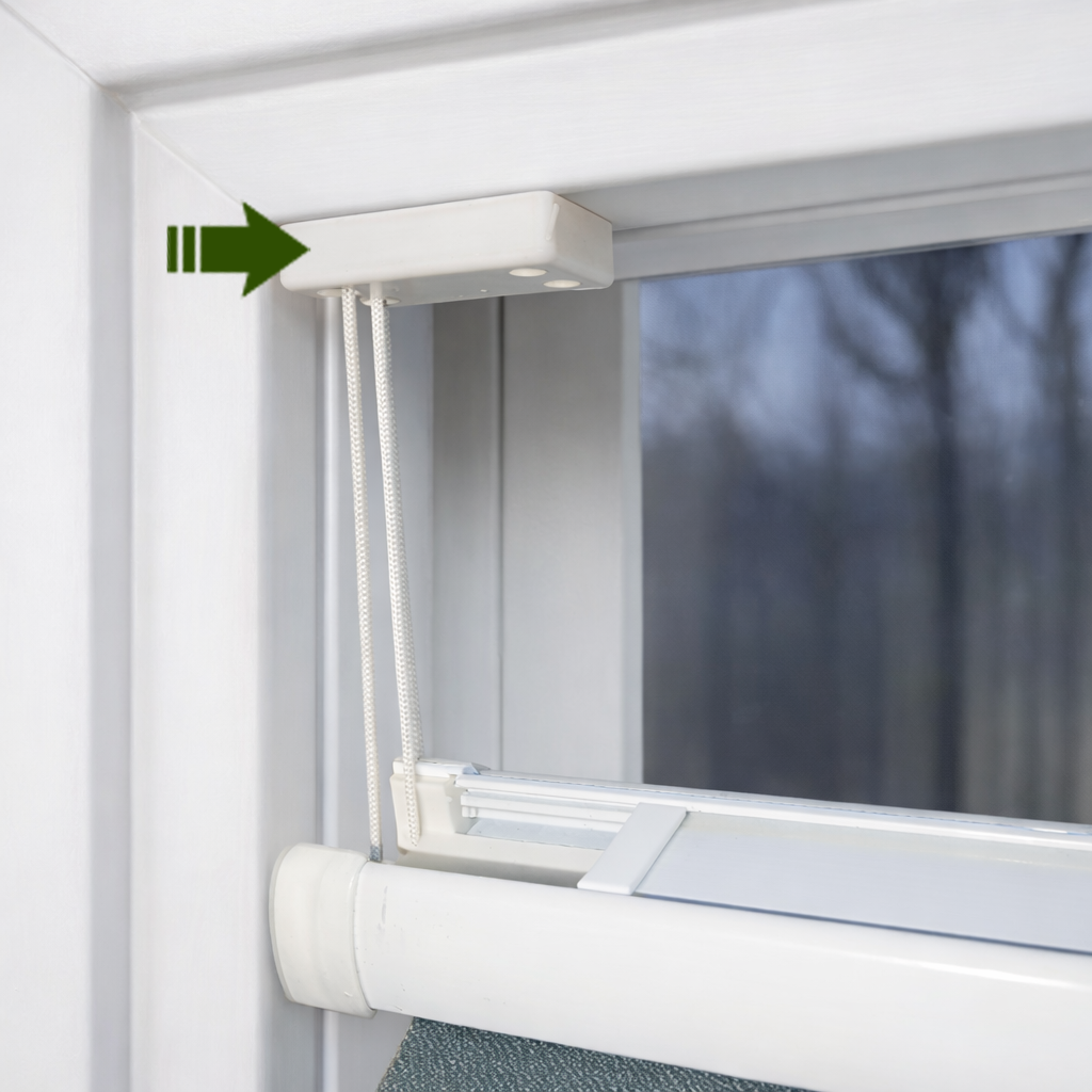 Așezați șablonul pe baghetă, în colțul ferestrei, și poziționați pătrățelul.