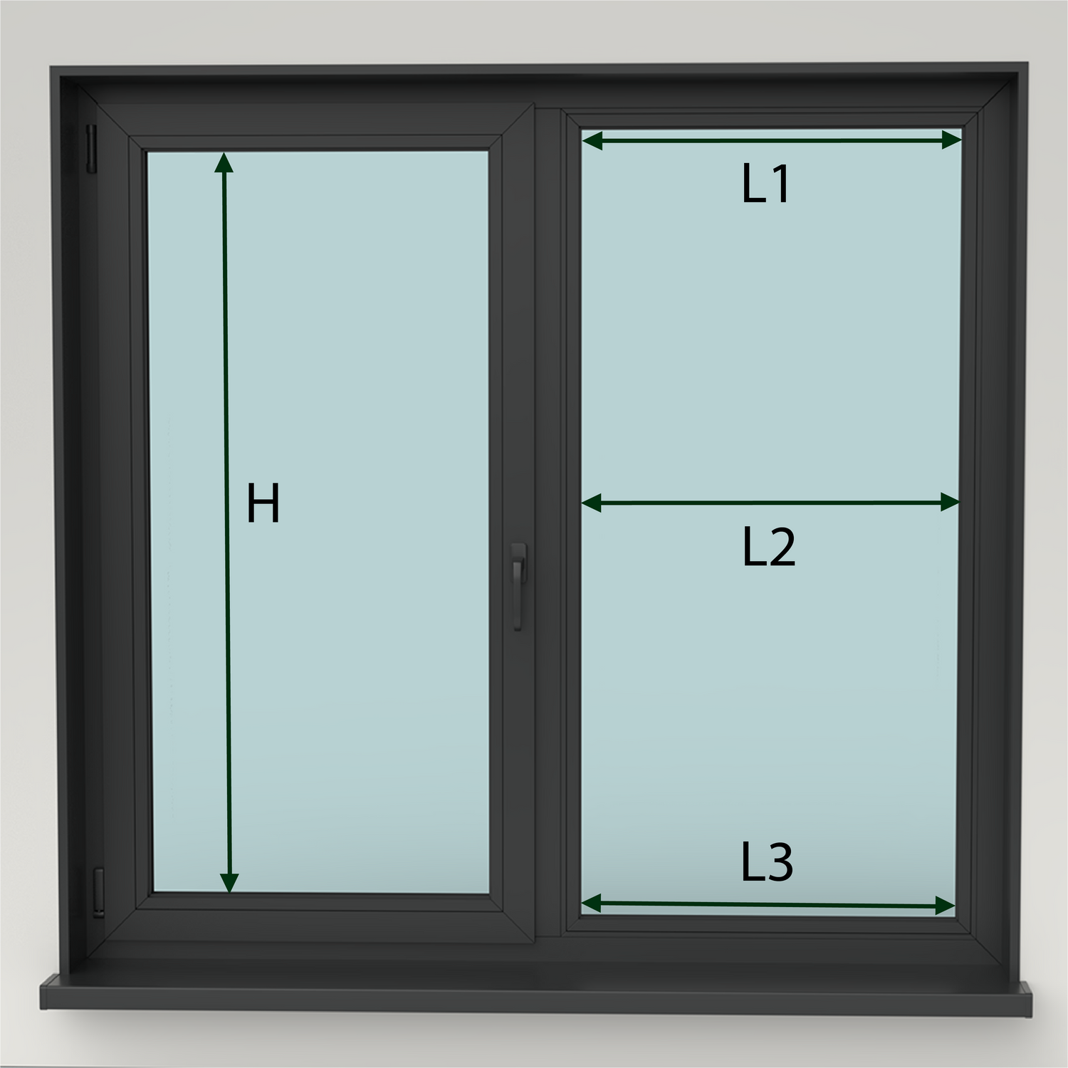 Înățimea pânzei (H = înălțimea sticlei)Măsurați între baghete o singură dată, pe verticală (de sus până jos).