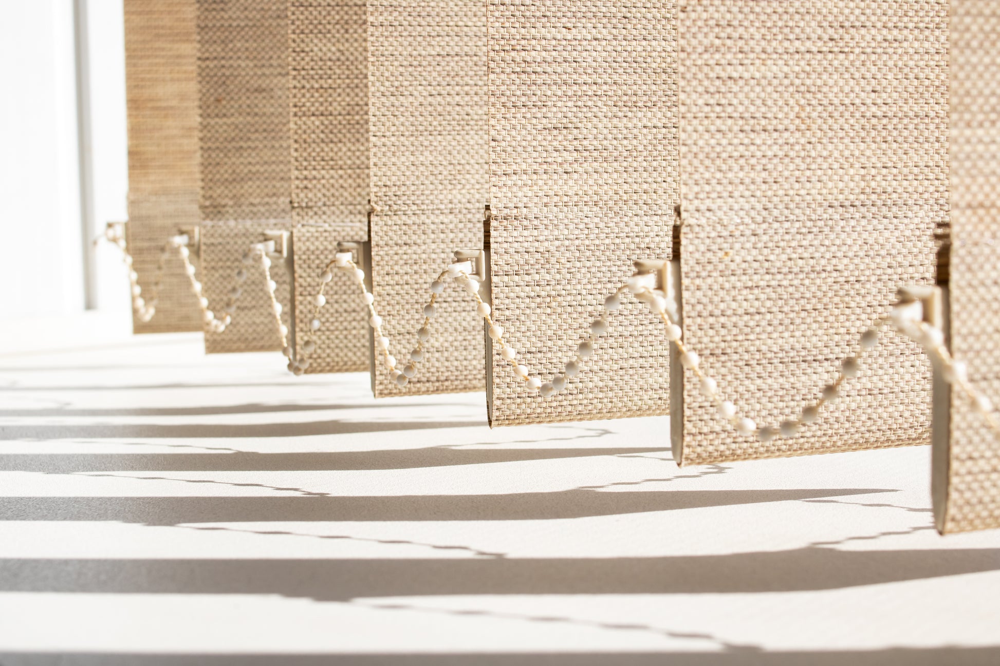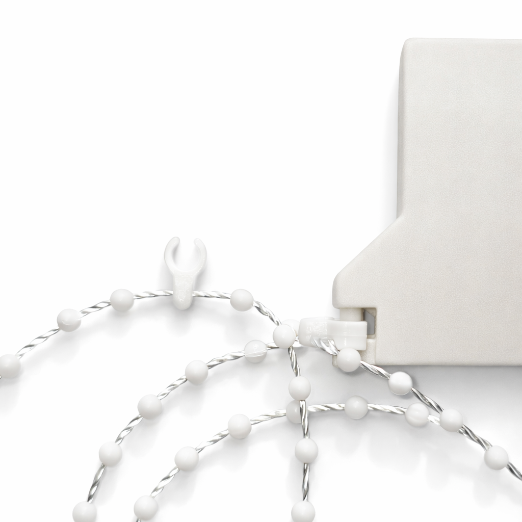 Lanțul inferior conectează greutățile lamelelor și menține jaluzeaua aliniată, reducând balansul.